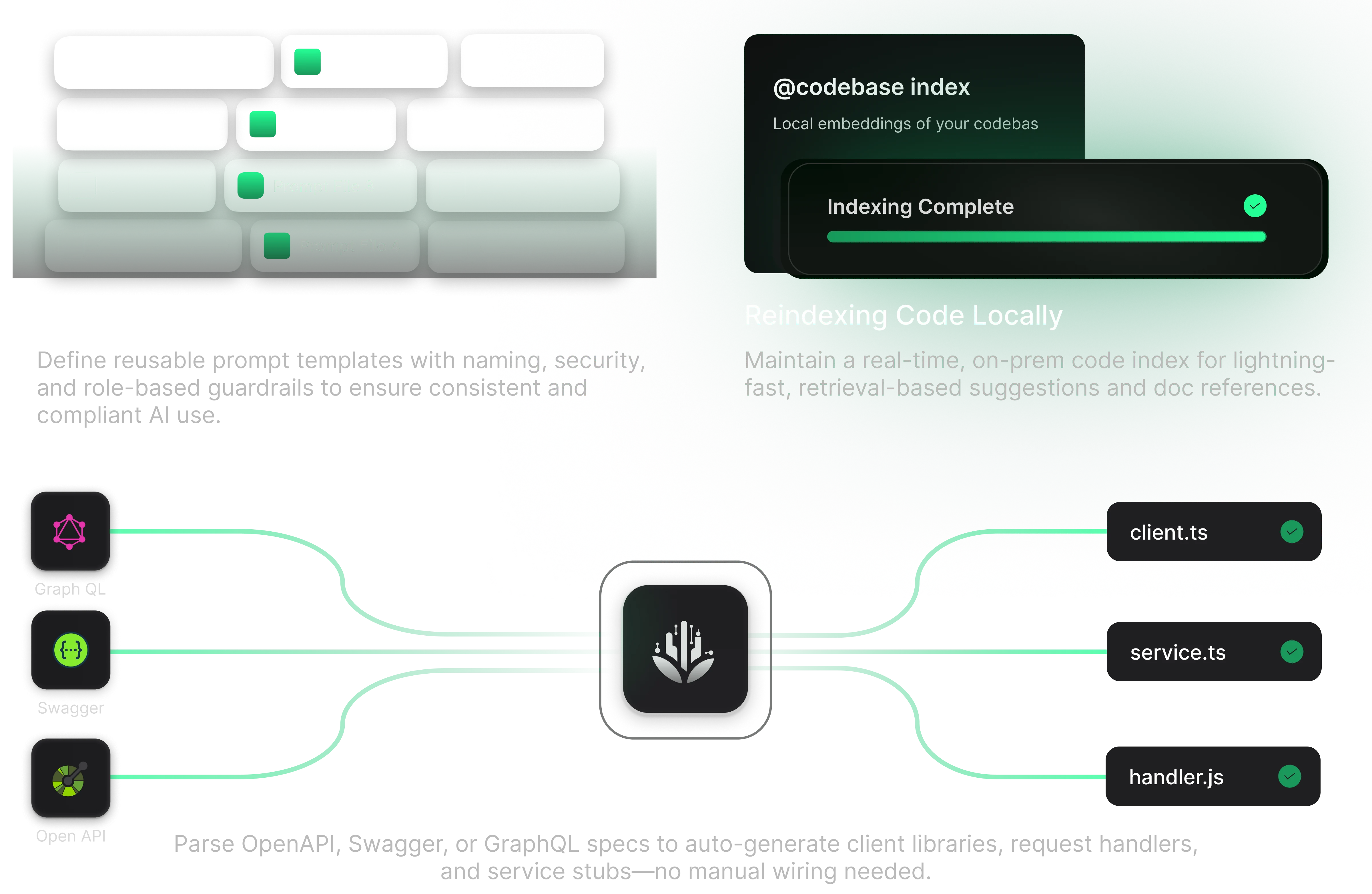 Planto reads your backend schema and instantly delivers clean , scalable code from service stubs to client modules without manual wiring .