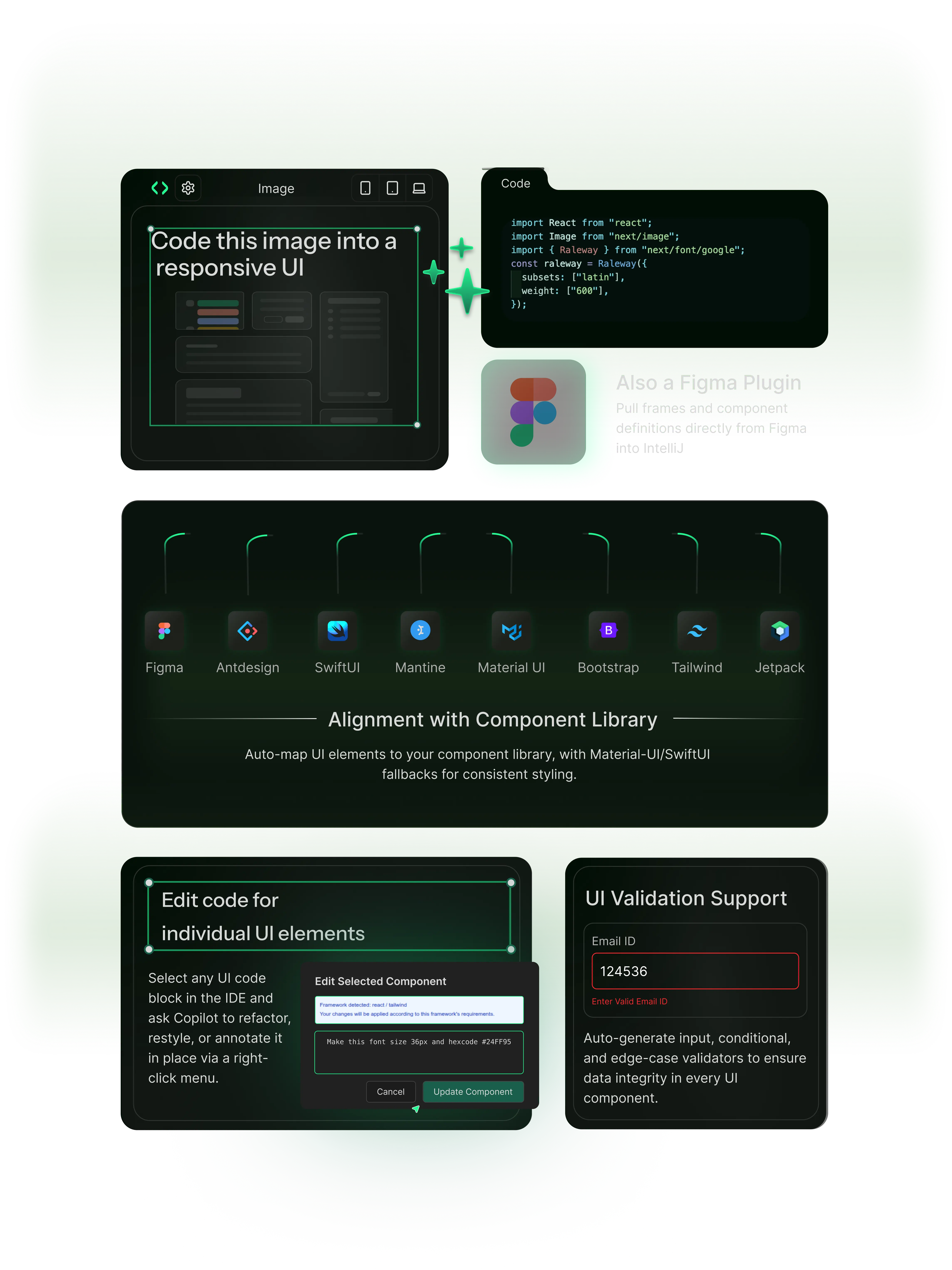 Instantly convert screenshots or design mocks into responsive React, SwiftUI, or Compose code.